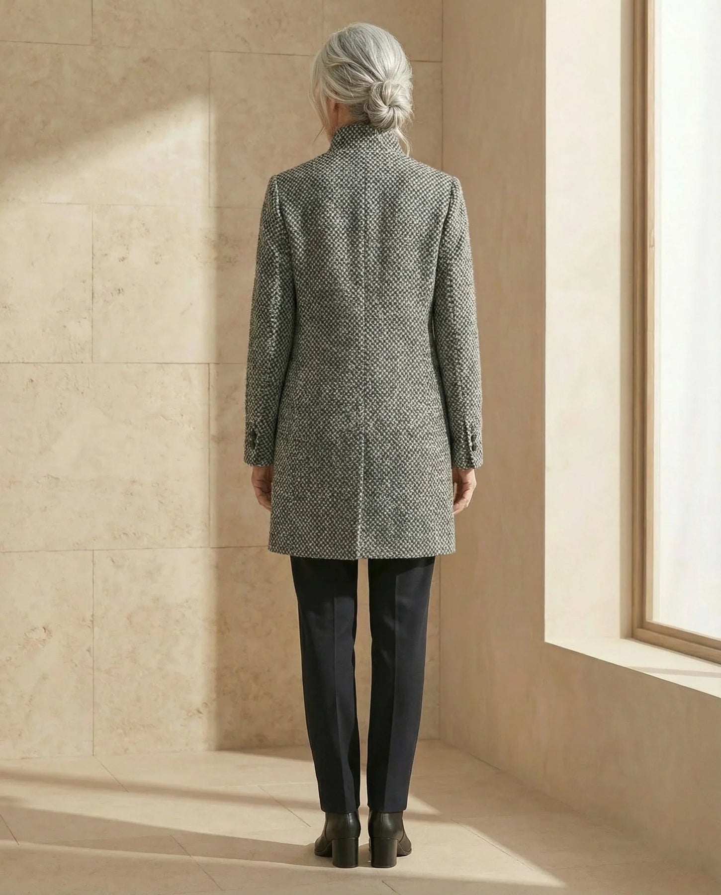 El tejido de mezcla de lana proporciona una calidez natural y una sensación lujosa al tacto. Su diseño entallado ofrece equilibrio entre comodidad y sofisticación, funcionando igual de bien con jeans que con vestidos elegantes.