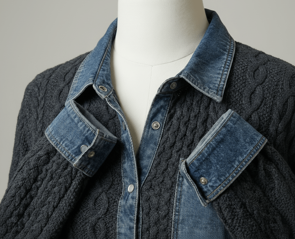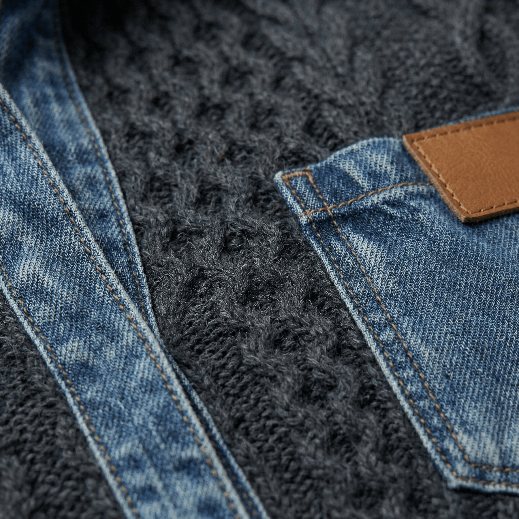 Diseño patchwork único – Aporta un estilo moderno y casual con detalles en denim.