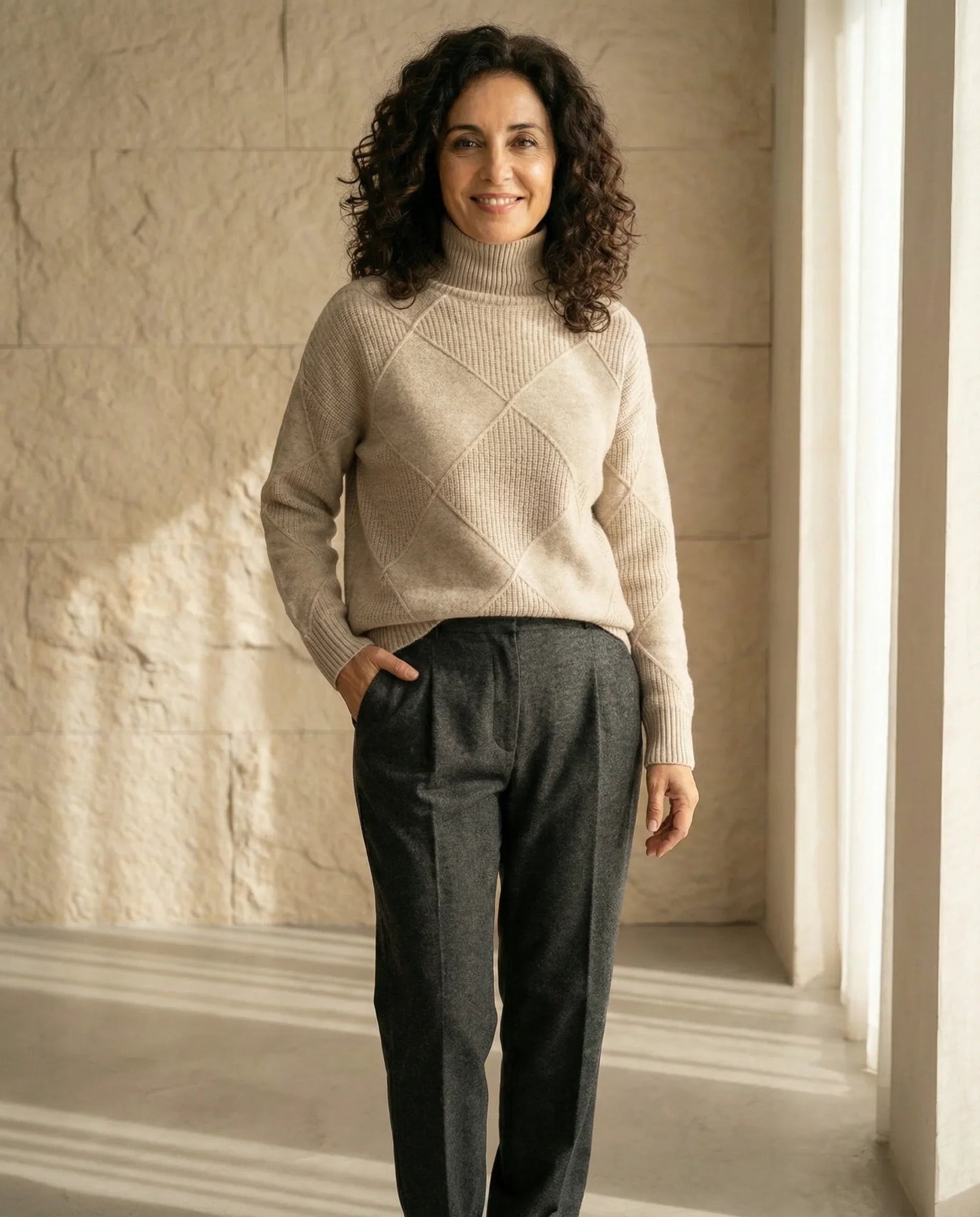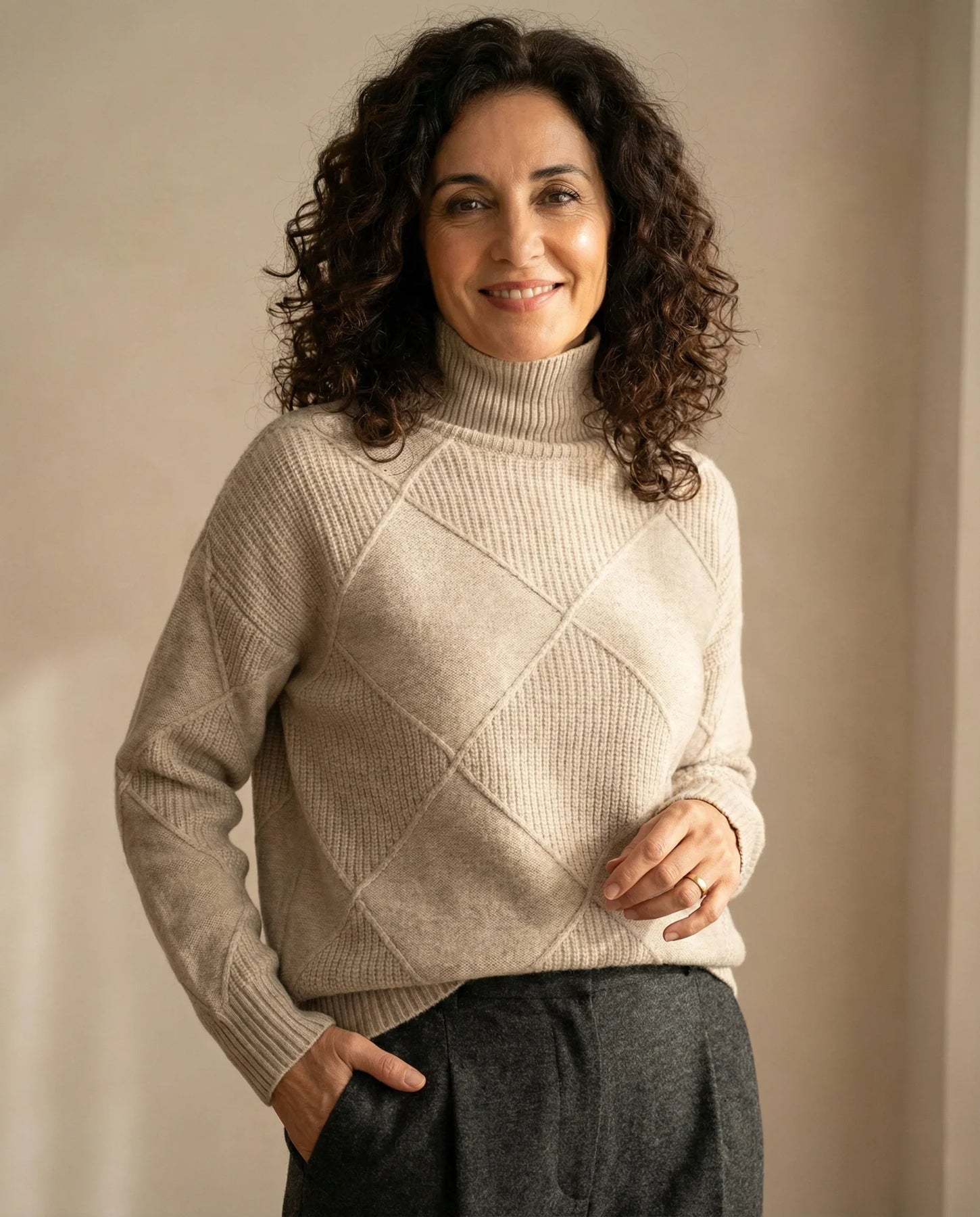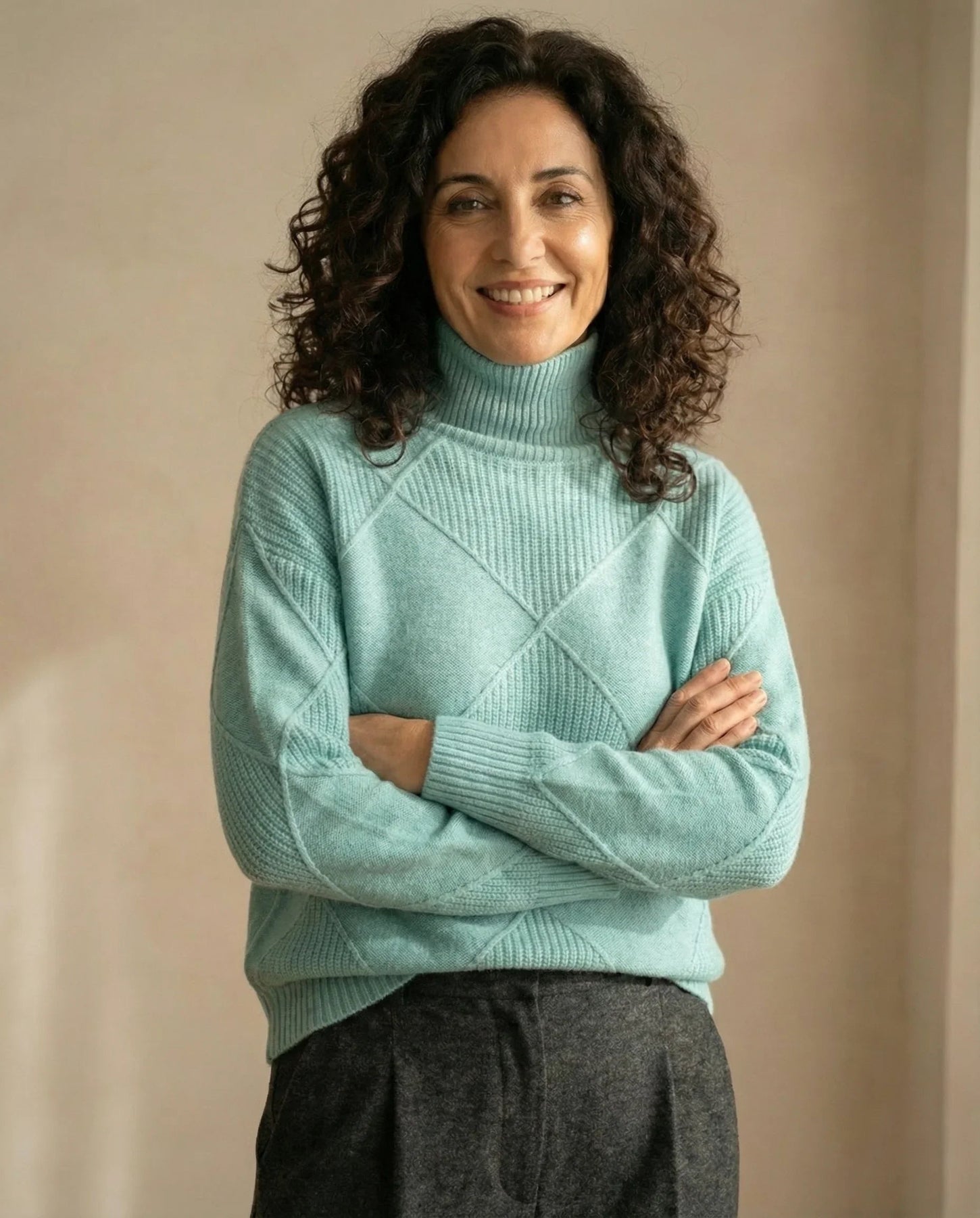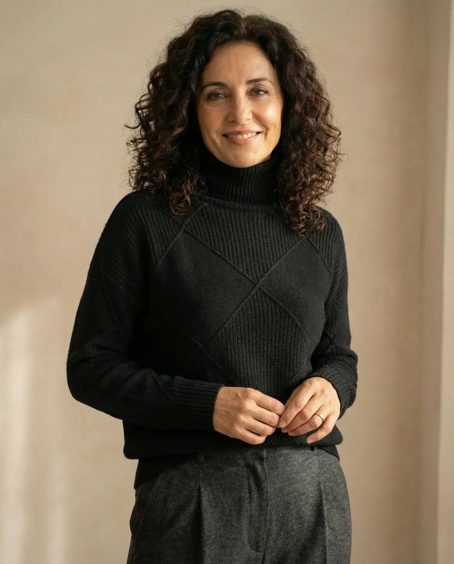 Elegancia atemporal – Cuello alto que aporta sofisticación a cualquier look.