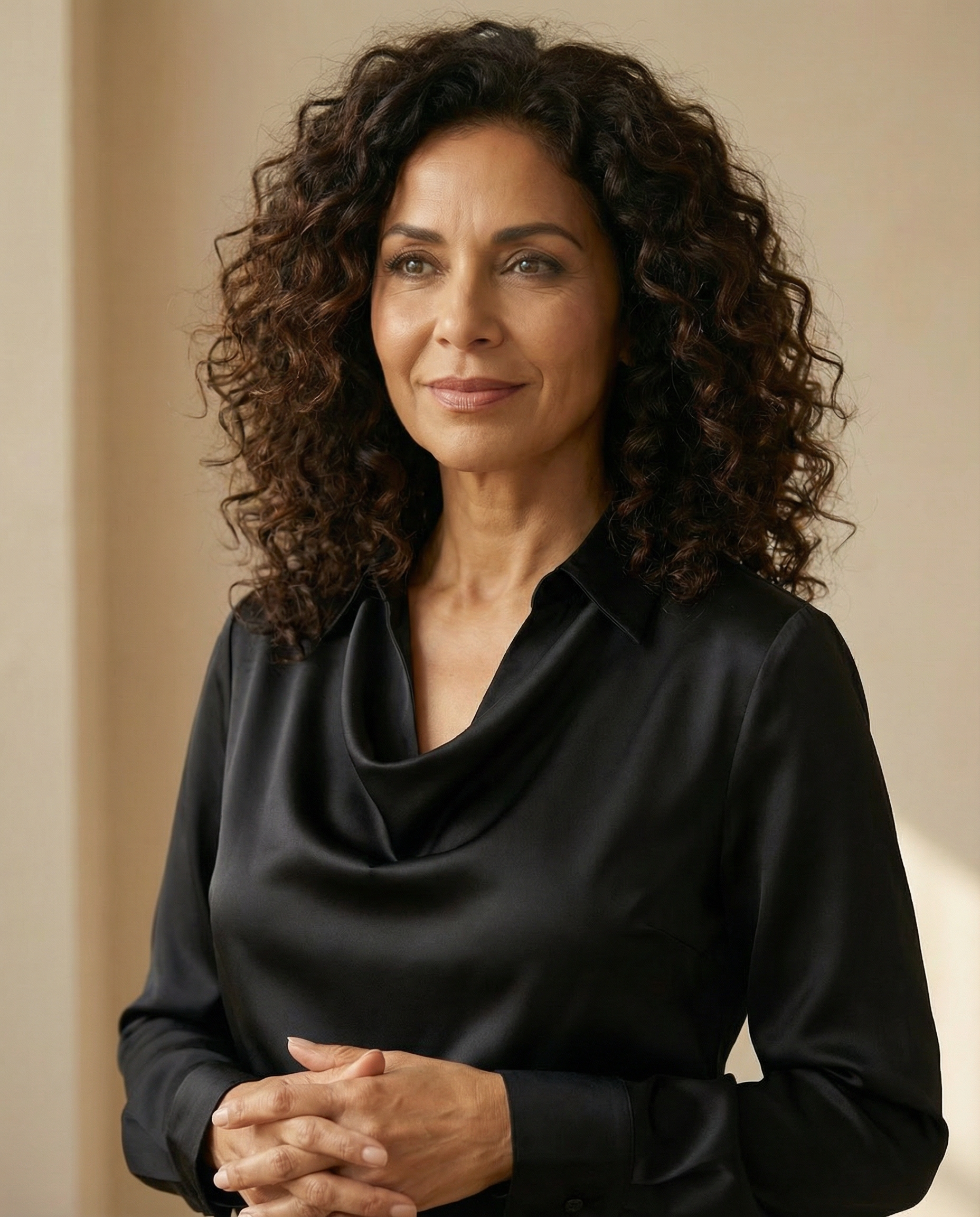 LaVellaro blusa satinada elegante combina elegancia y confort en una sola prenda.